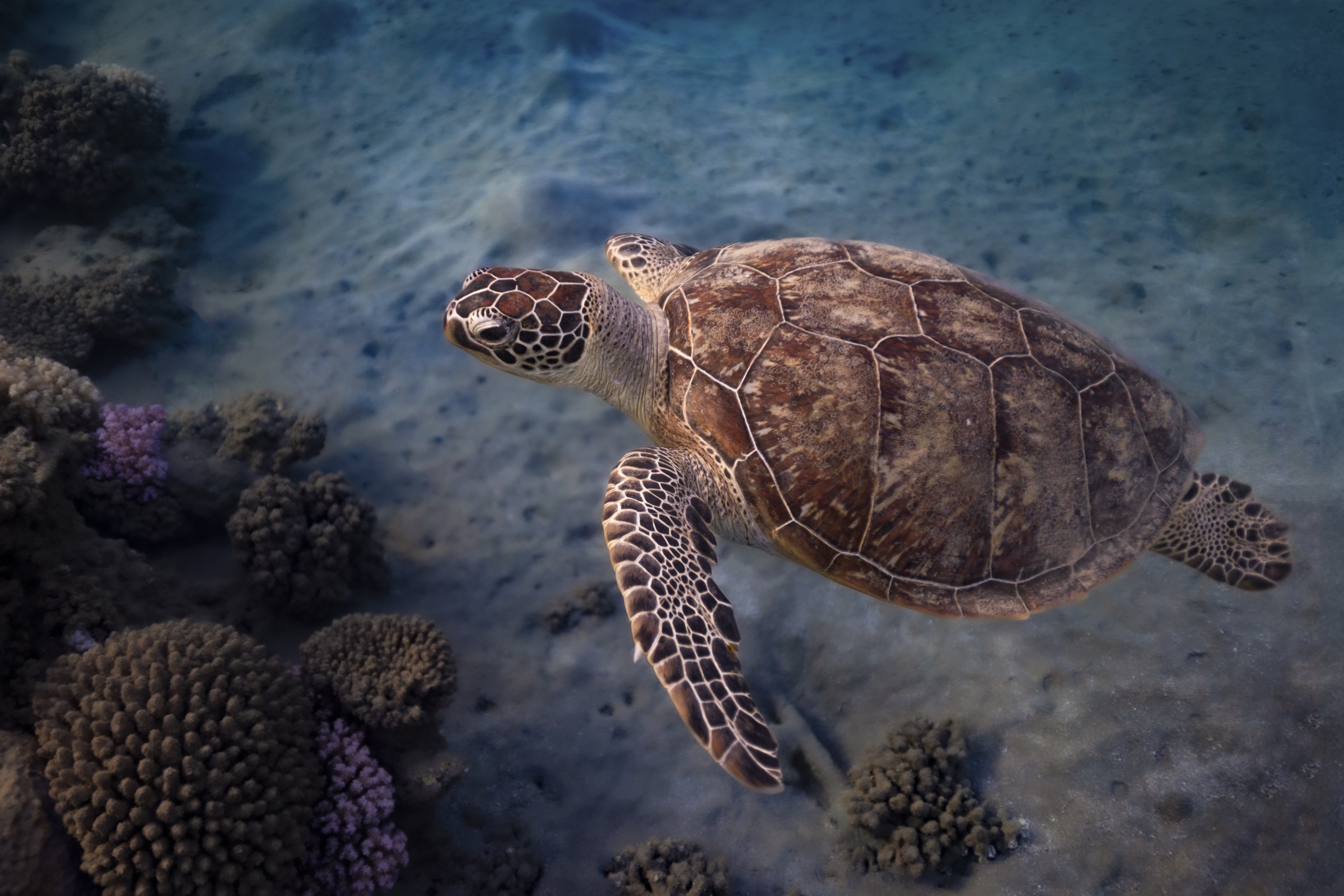 Es war kurz nach Sonnenaufgang, das Rotemeer präsentieren sich von der schönsten Seite. Als eine grosse Grüne Meeresschildkröte gemächlich an mir vorbei schwamm. Voller Emotionen betrachtete ich später im Zimmer das Bild.