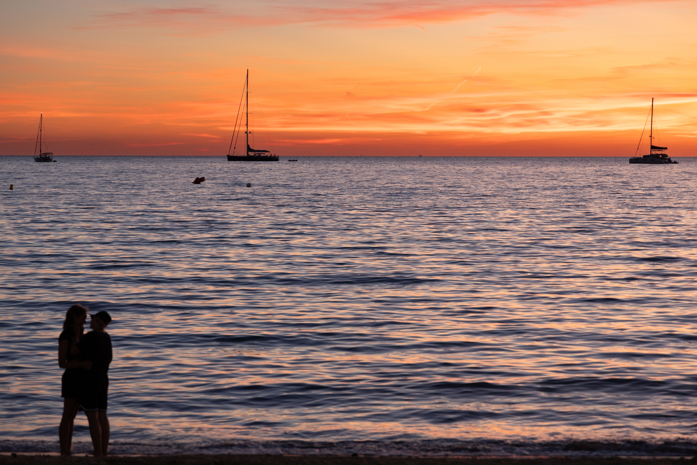 Die goldene Stunde am Strand von Mallorca und die perfekte Szene dank einem Liebespaar. Wer versinkt nicht in Gedanken bei längerer Betrachtung?