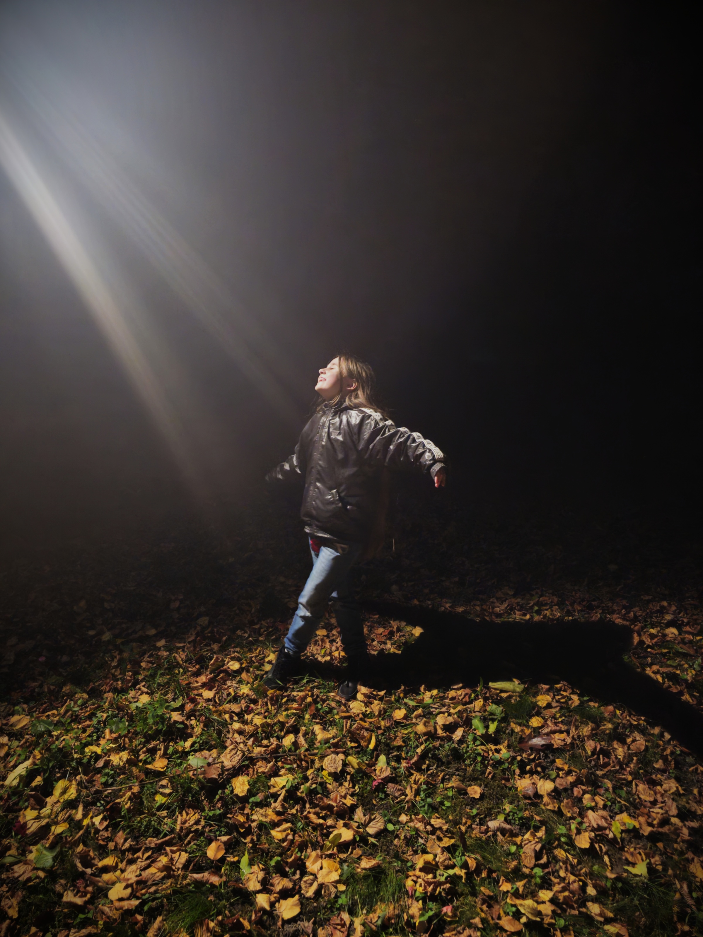 The soft beam of light seems to bless a young girl with its sentient radiance. Welcoming these bright rays, the child carries the promise of the future, of moments yet unlived but already glowing inside her. Standing between light and shadow with her face lifted and her heart open, she is the embodiment of exuberant life. There is no pose here, no artifice, only the child’s immediate wonder meeting the brilliance of the celestial light. In a world around her hushed by autumn’s breath there she stands as a soft rebellion of life against transience. Where the world exhales in fading color, she inhales radiance, where the air cools, her presence burns bright with the promise of what is still to come. The world around her dissolves into stillness, yet within that stillness something immeasurable unfolds. It is a sense that the joy of life is the true source of light.