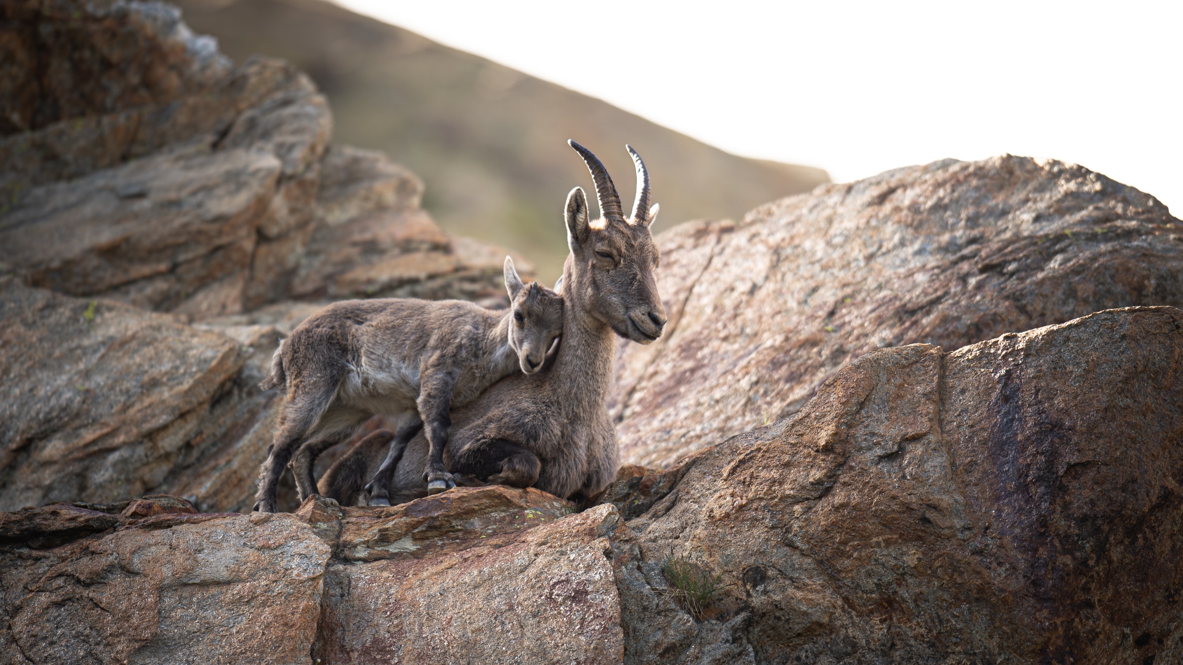 an einem wunderbaren Walliser Bergmorgen, konnte ich festhalten wie sich das kleine Steinkitz an die Mutter anschmiegt. wie kann man die Emotion LIEBE besser festhalten als in so einem wunderbaren Moment?