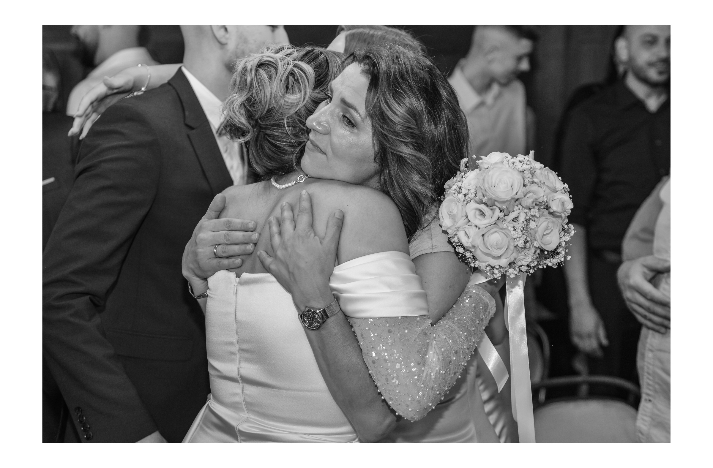 Back to the galleryEin stiller Moment voller Liebe – die Braut in den Armen ihrer Mutter, Tränen der Freude und des Abschieds zugleich.
