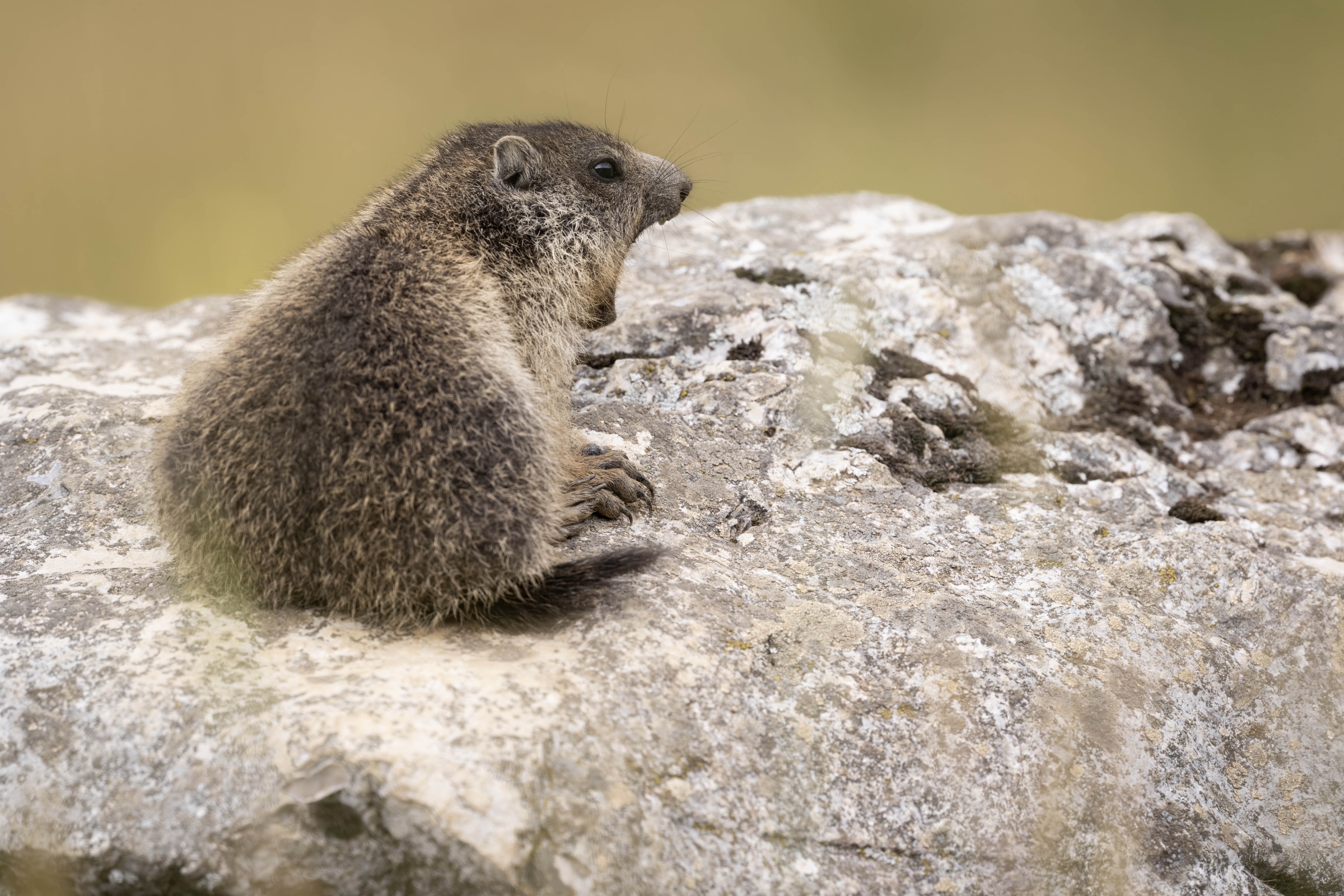 Jeune marmotte des Alpes fatiguée qui s'apprête à faire une sieste